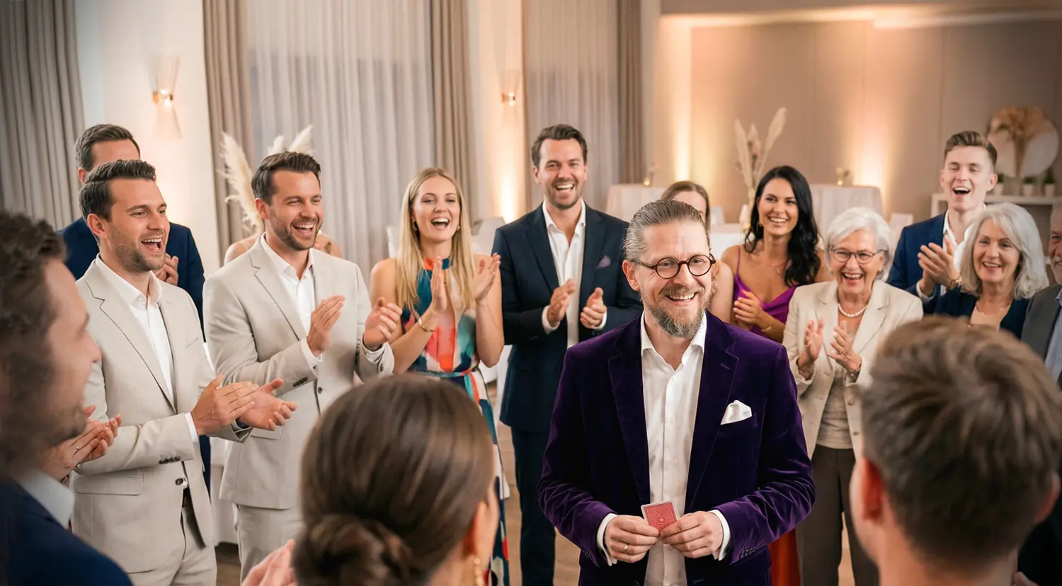 Wenn Sie Unterhaltung für Ihre Hochzeit planen: Hier finden Sie die bewährten Zeitfenster (Sektempfang, Dinner, Programmpunkt), die passenden Formate (Close-up, Tischzauberei, Zaubershow) sowie eine klare Orientierung zu Kosten & Ablauf.